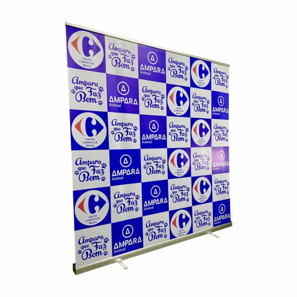 Banner Roll Up 200x200cm é a escolha ideal para criar uma comunicação visual impactante em eventos, feiras e pontos de venda. Com grande área de exposição, valoriza imagens e mensagens promocionais com cores vivas e alta definição. A estrutura ret